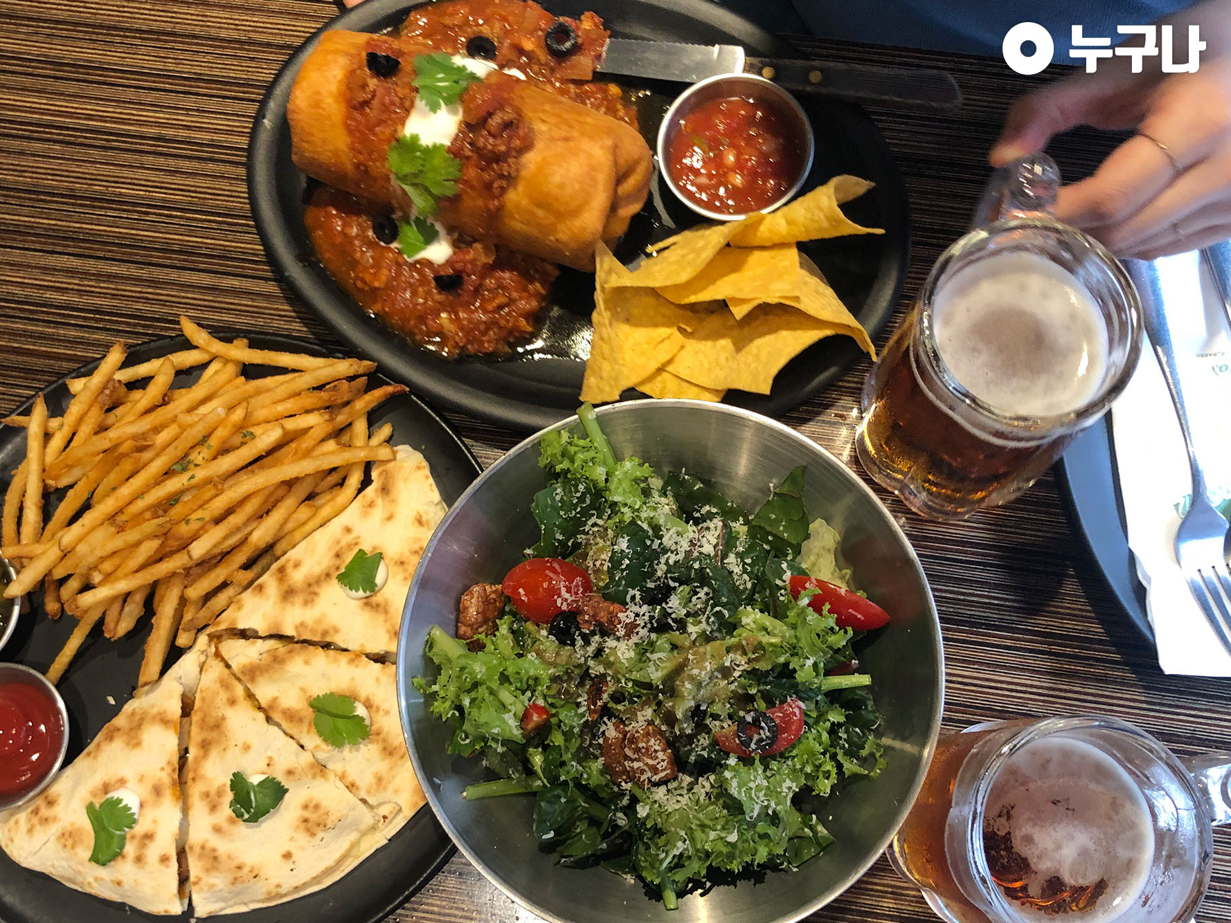 저희가 시킨 메뉴중에 맥주와 샐러드가 먼저 나왔습니다!