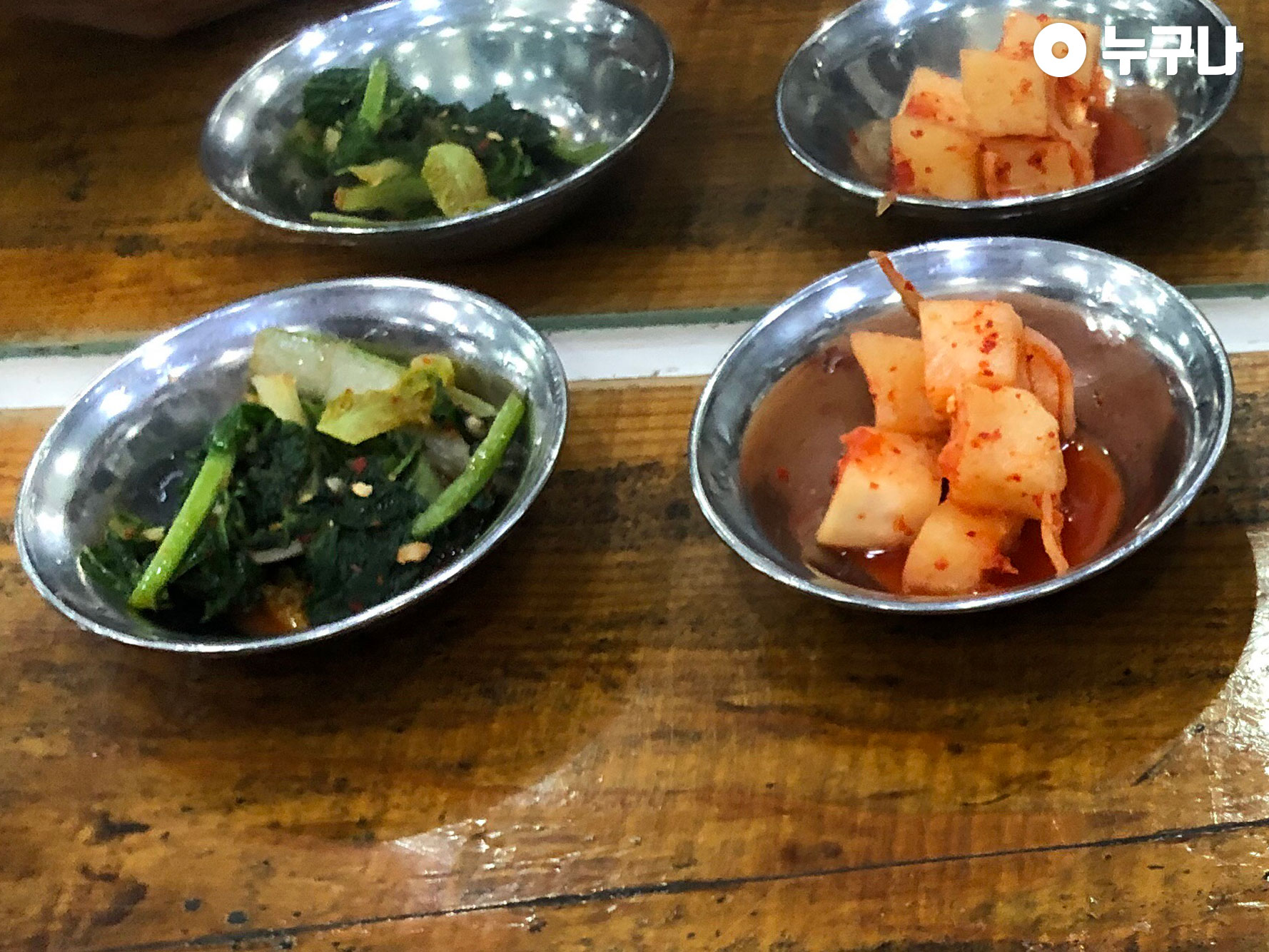 우동과 비빔국수를 주문하니 나오는 반찬입니다.