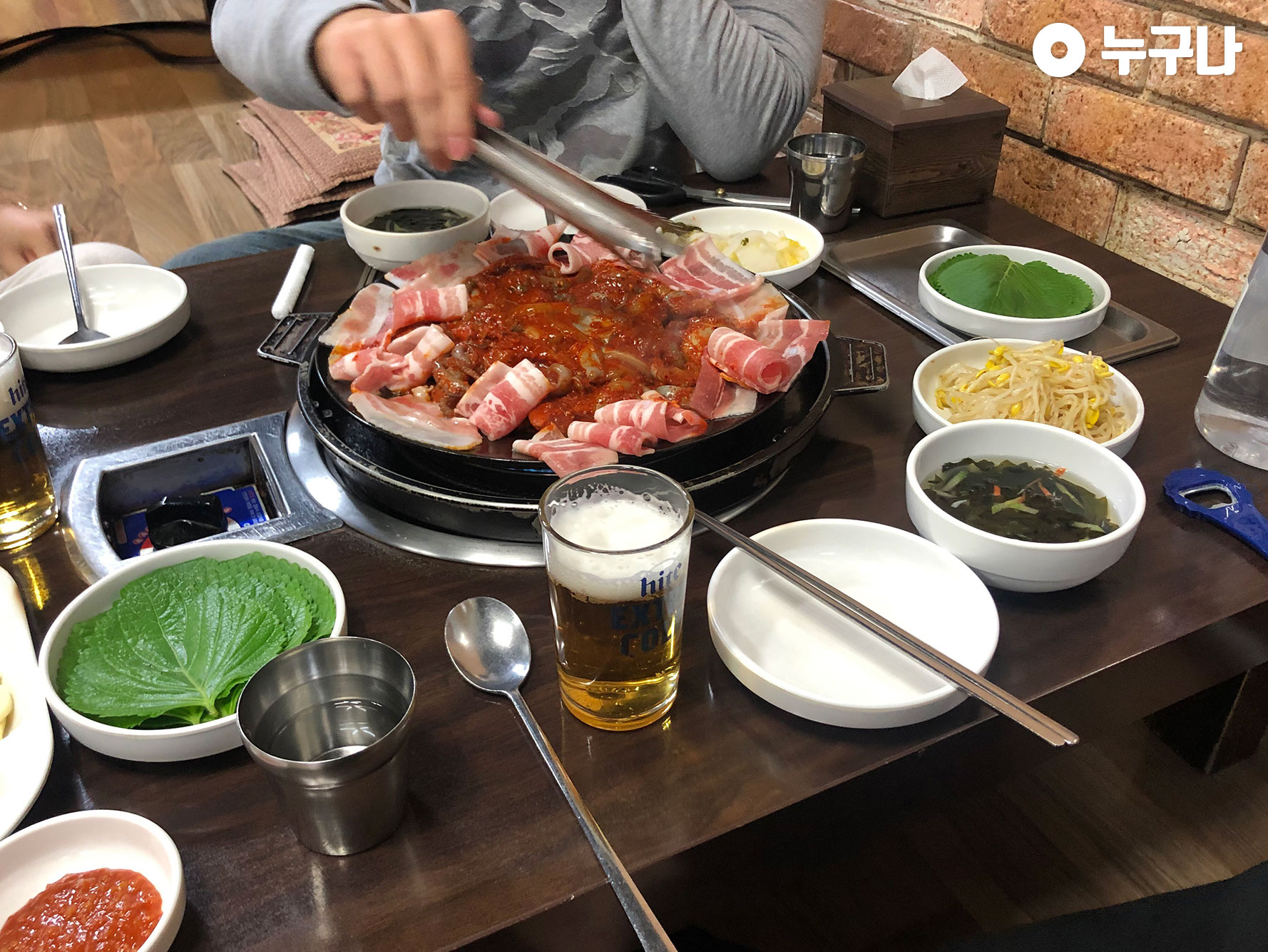 쭈꾸미와 삼겹살, 그리고 밑반찬이 나왔습니다!