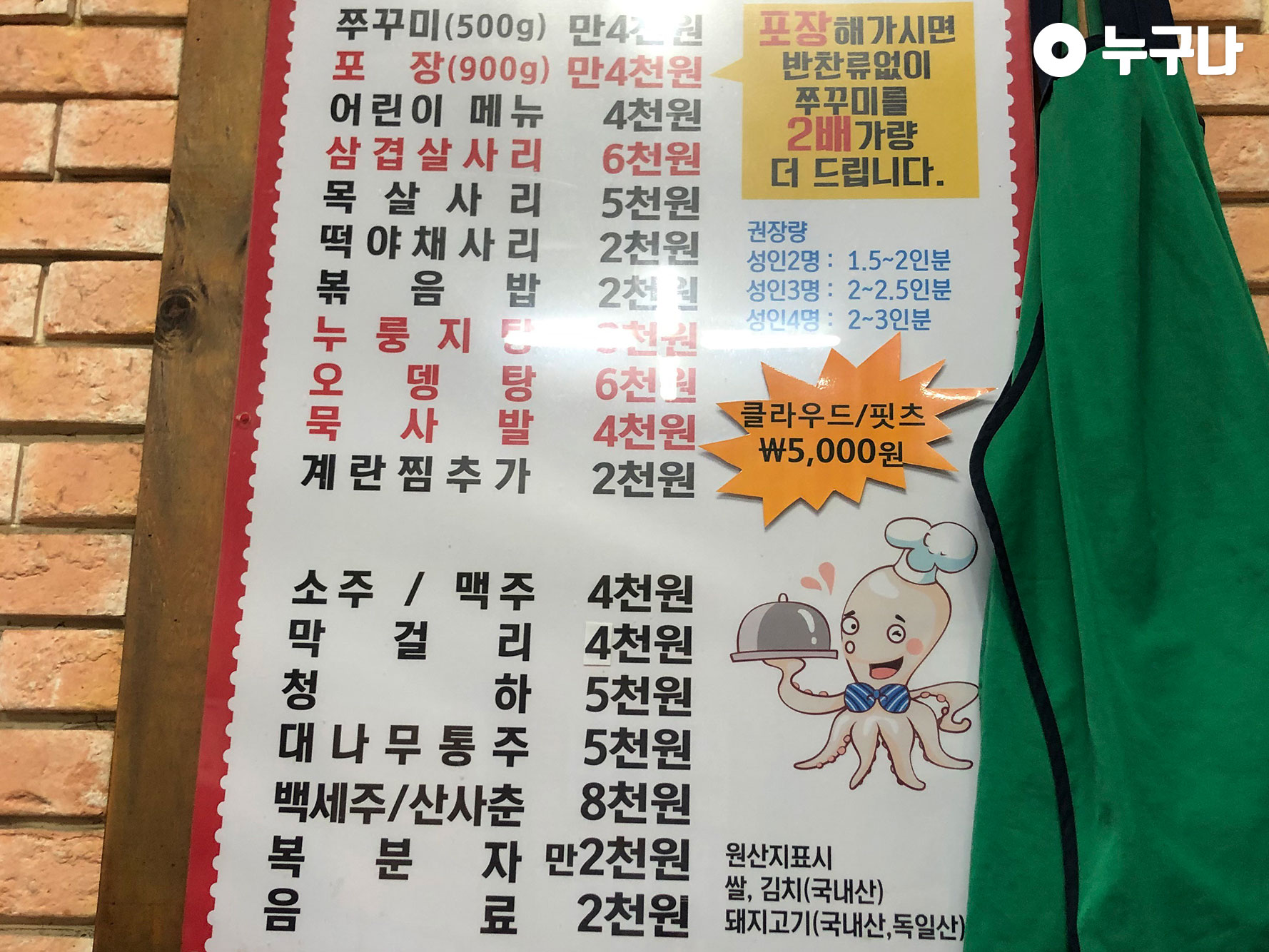 쭈꾸미가 다른 가게들보다는 푸짐했습니다~