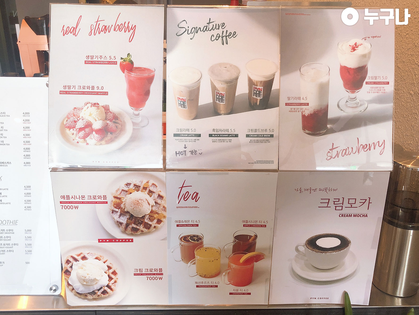 아직 여기서 와플이나 다른 메뉴는 안먹어 봤지만 포스터사진으로는 엄청 맛있어 보이는데요.
