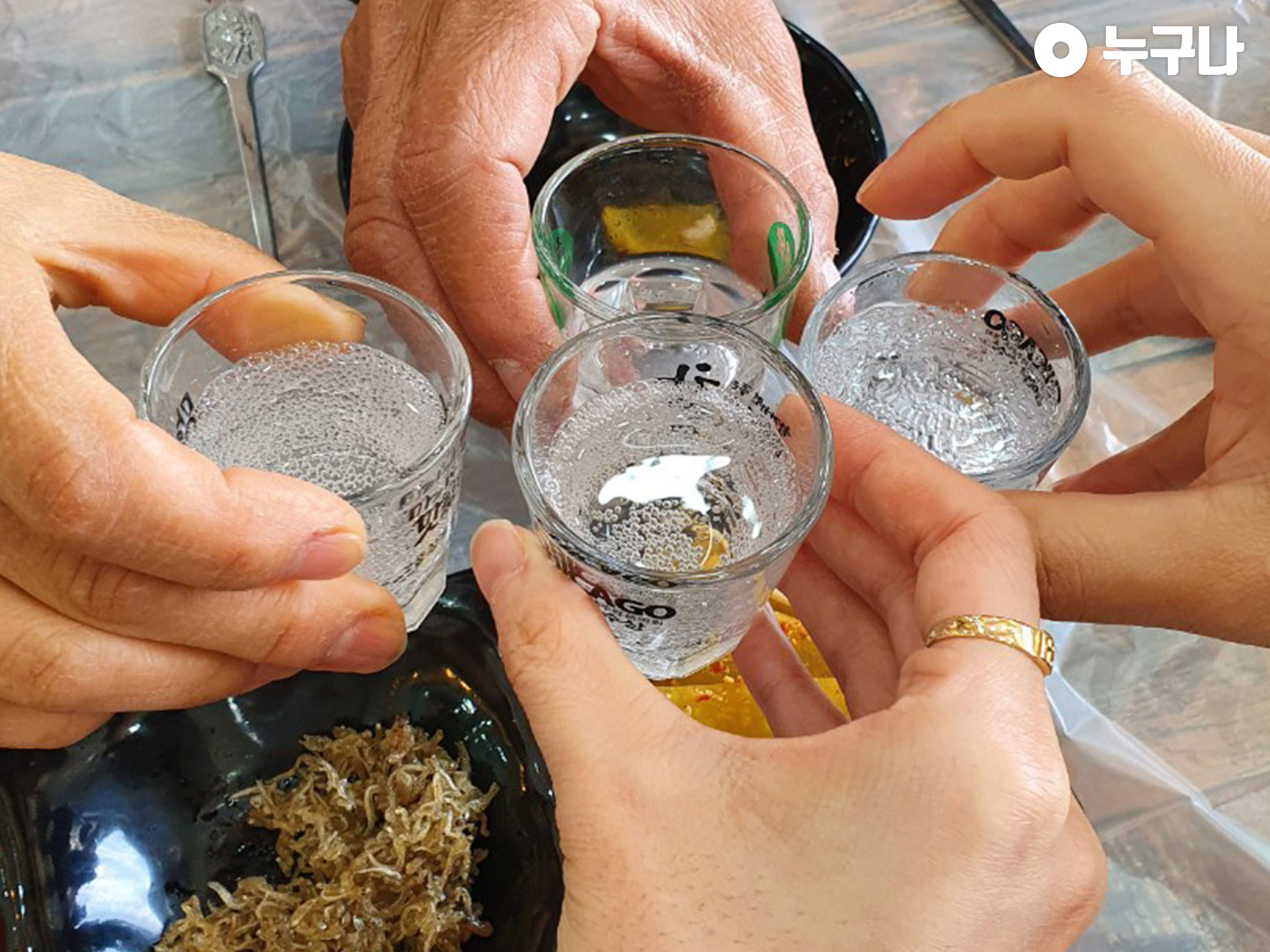 아빠 혼자 소주를 드시고 저희는 사이다를 먹었는데요 ㅎㅎ