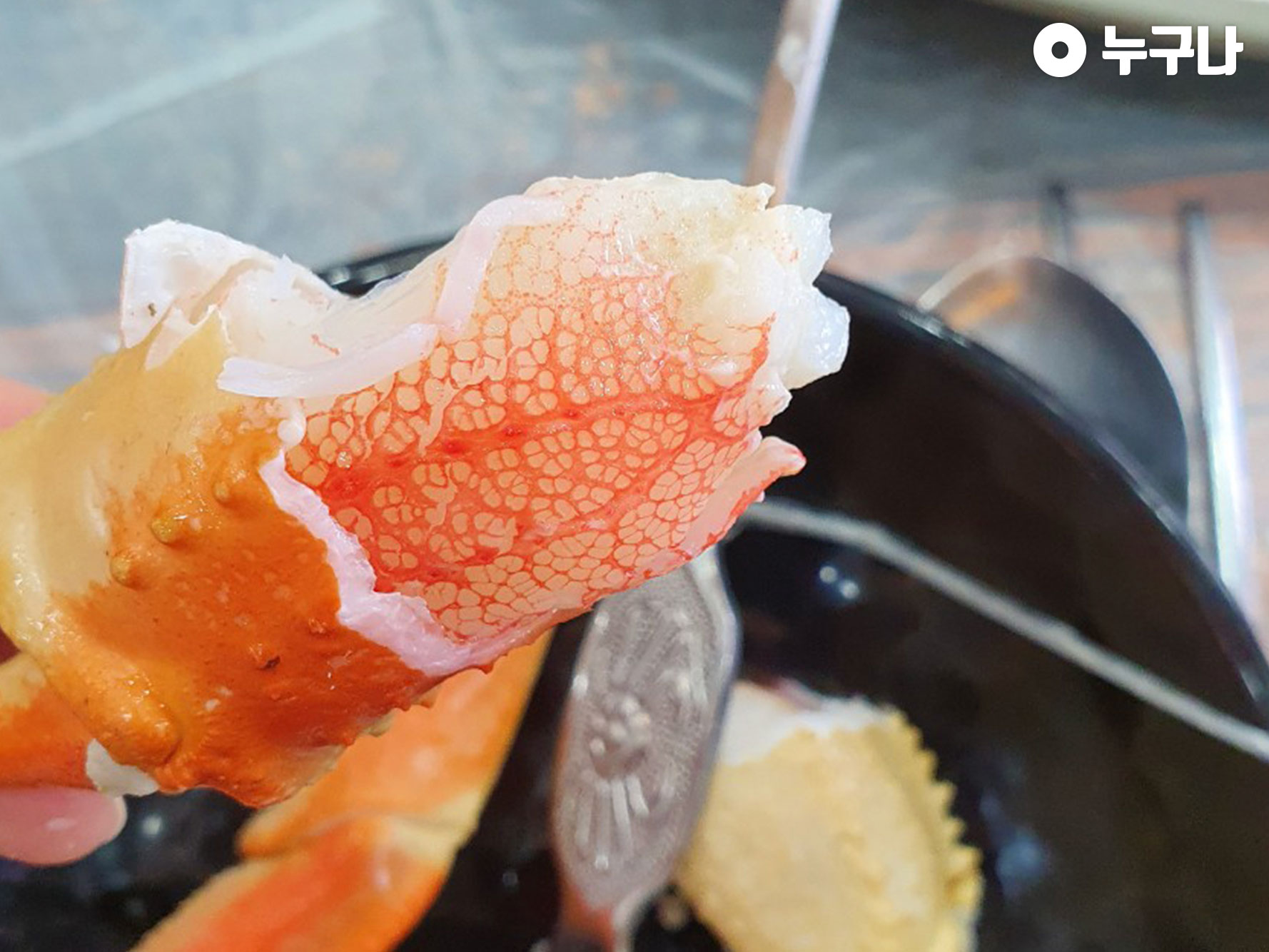 포크로 살살 긁으면 대게 살이 나옵니다!