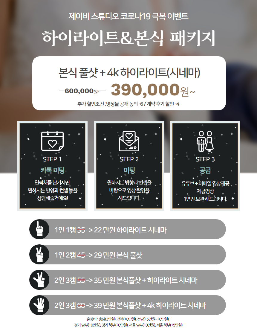 본식스냅 2인3캠 39만원도 10만원 할인을 받고 29만원에 진행을 할 수 있습니다!