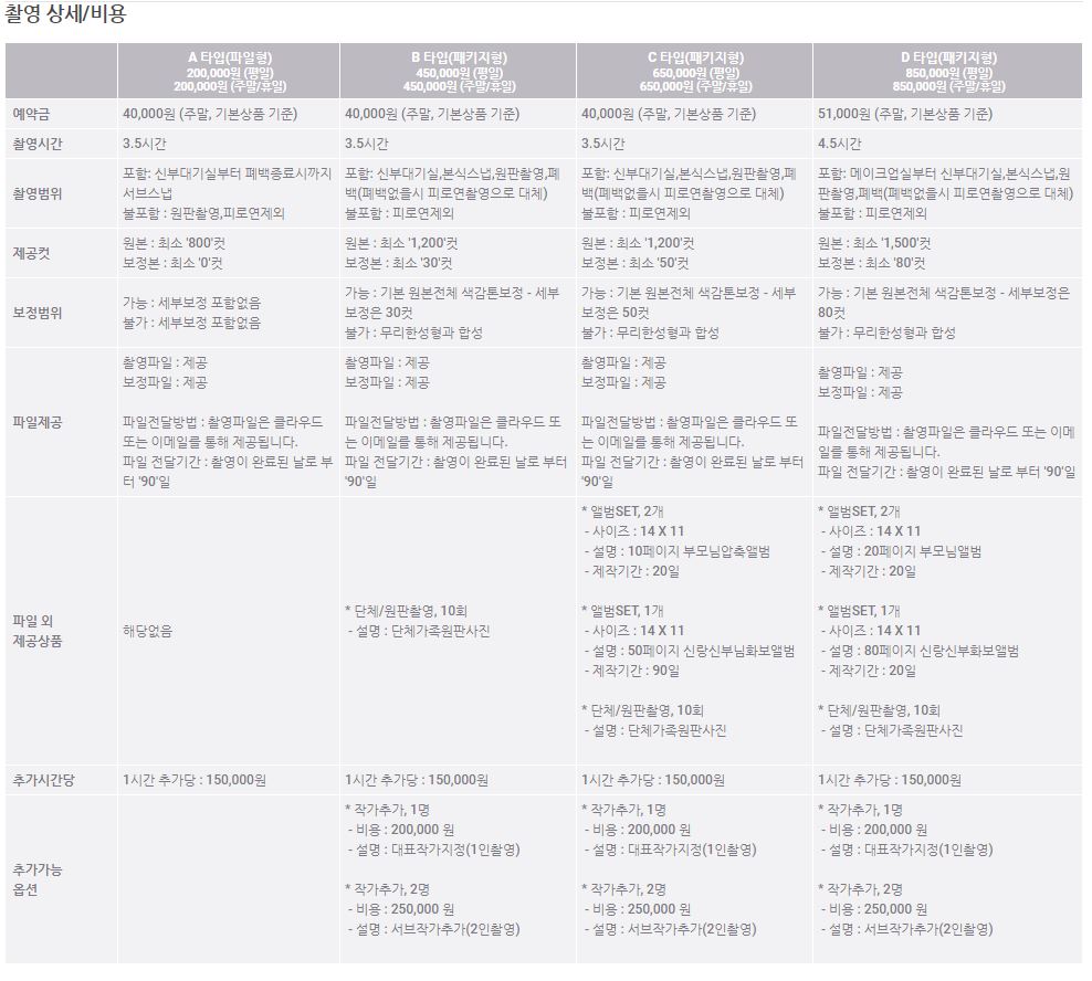 B타입은 최소 1200컷, 보정은 최소 30컷입니다.