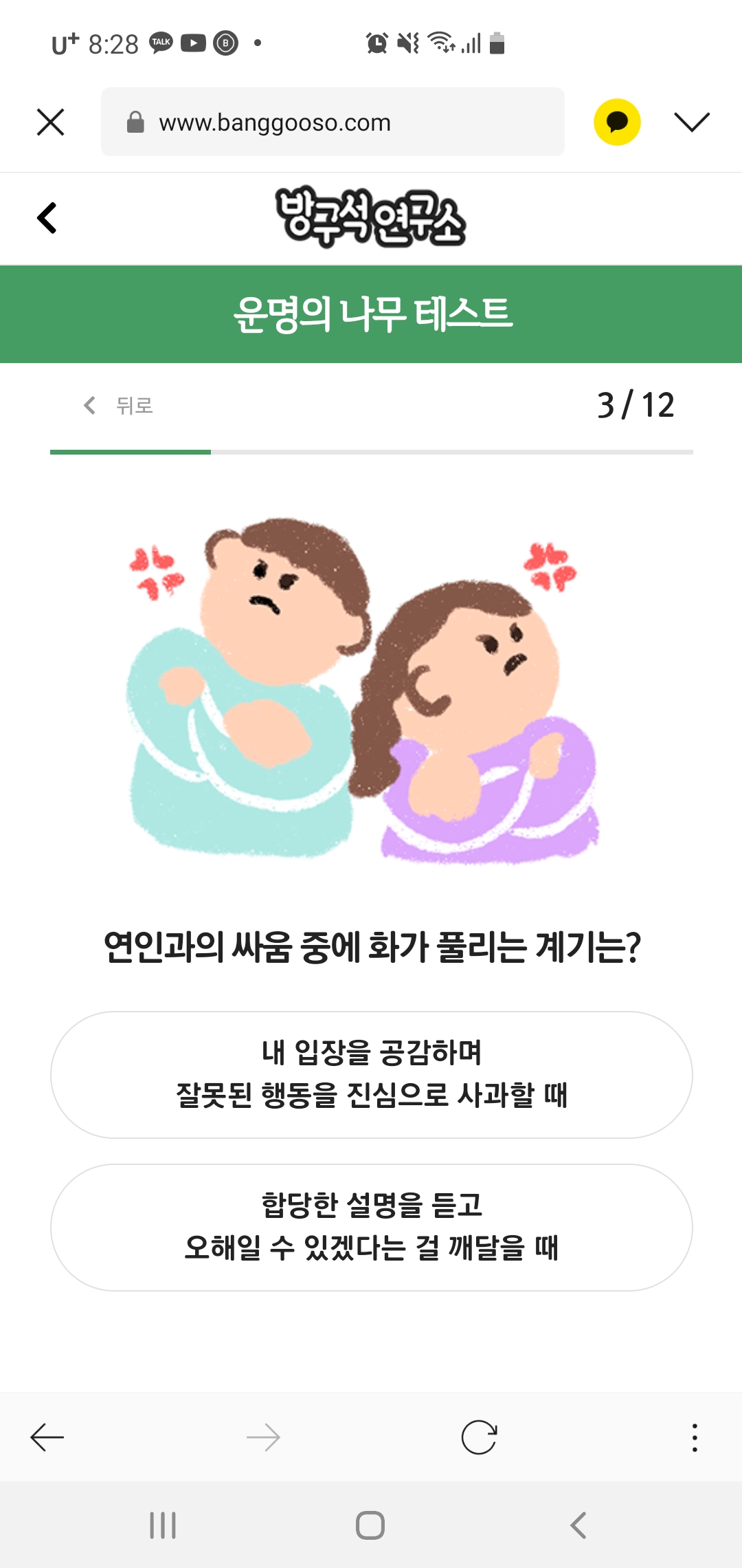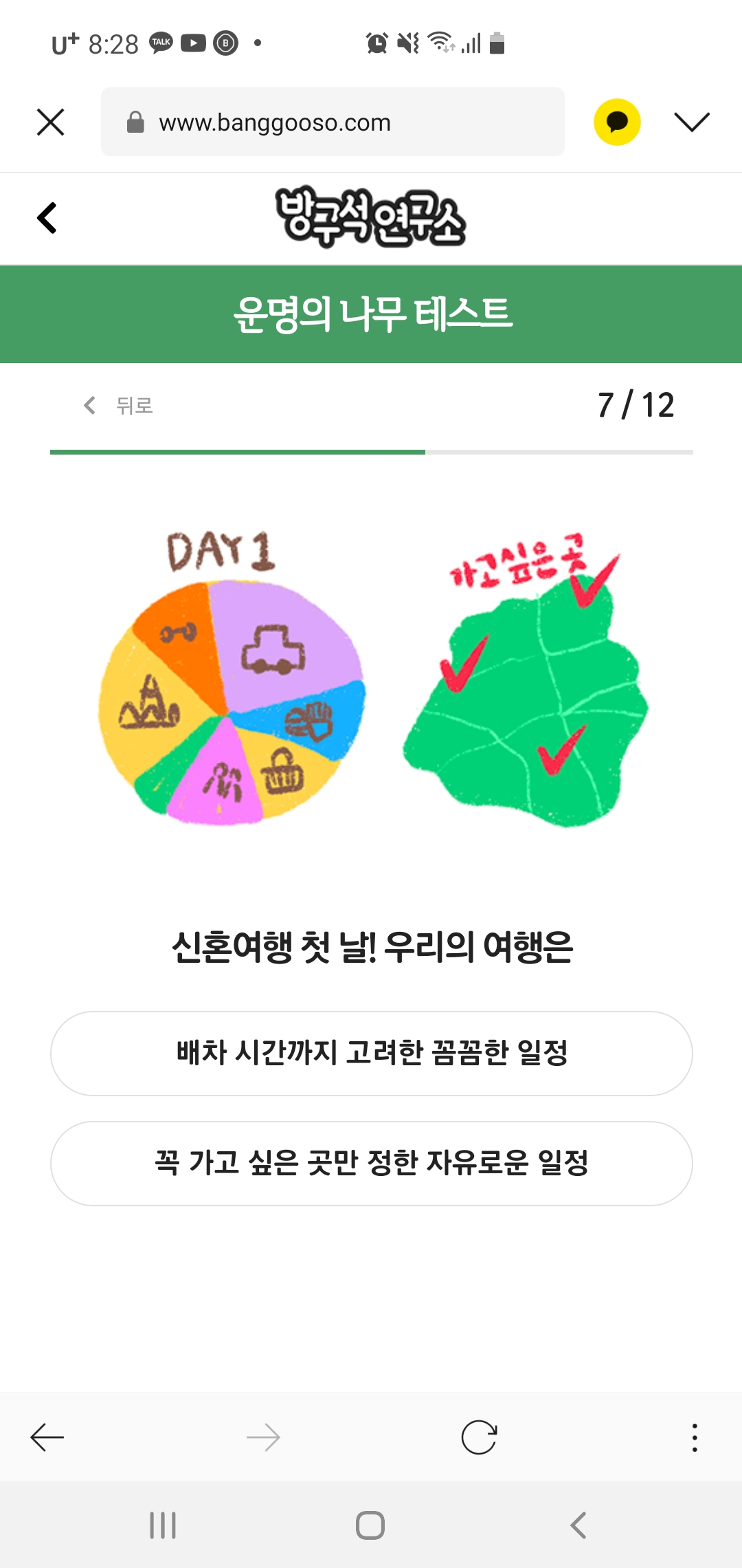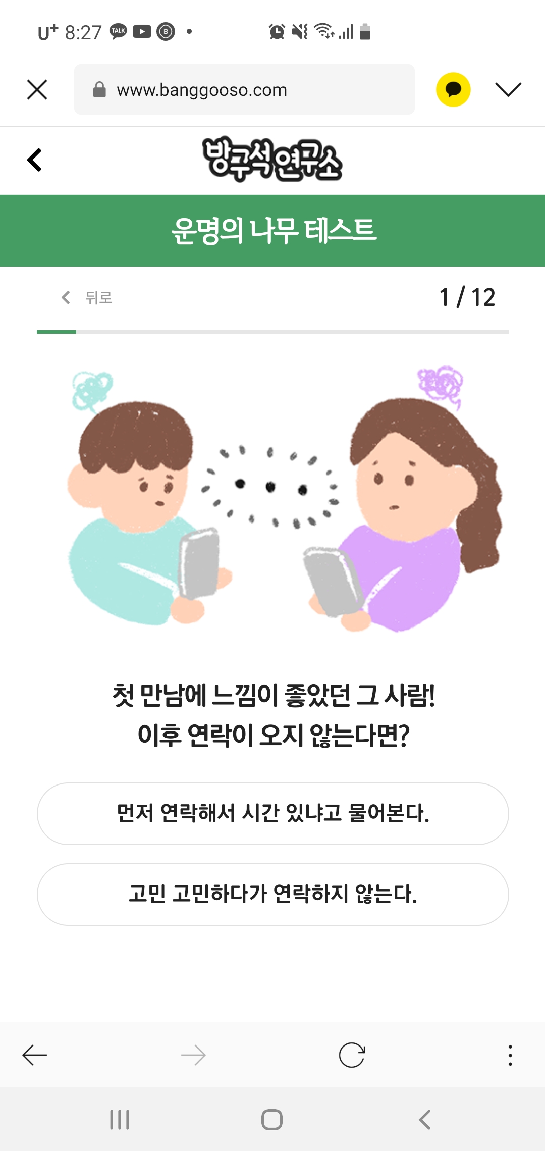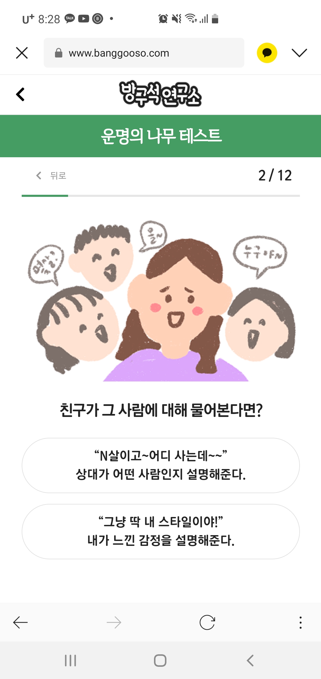 운명의 나무테스트는 12가지 질문의 답을 하면 결과가 나오는데요.