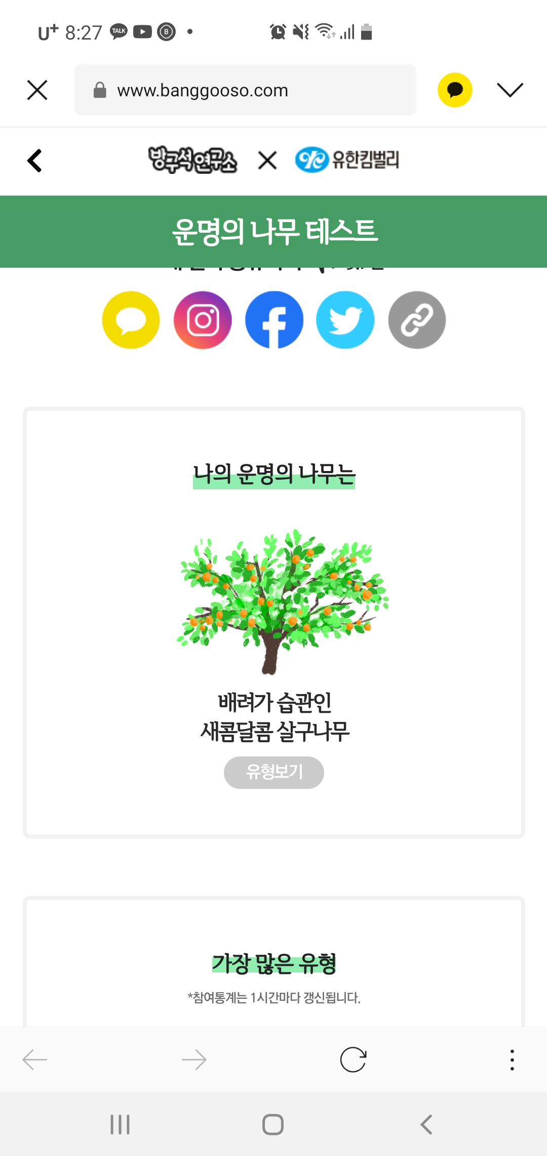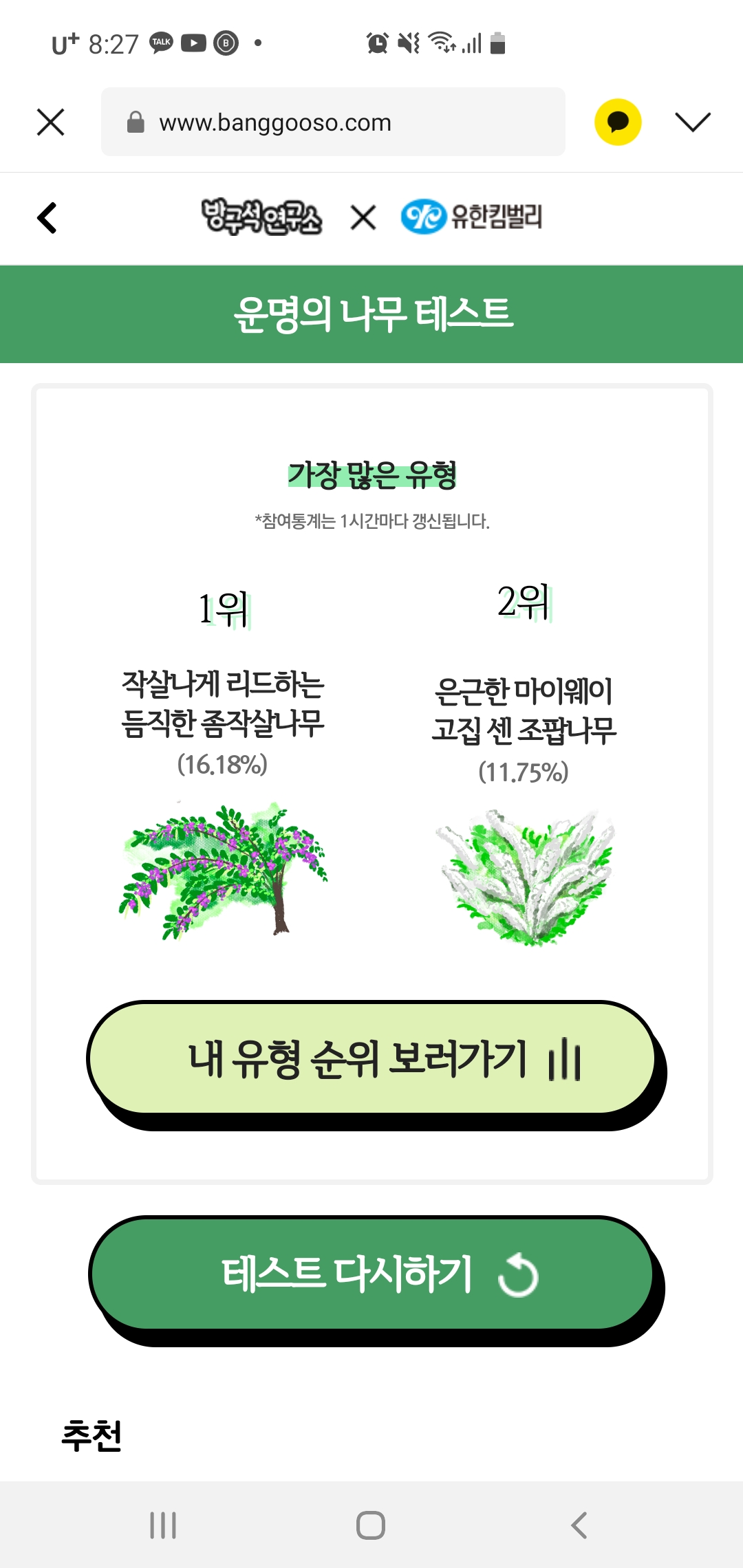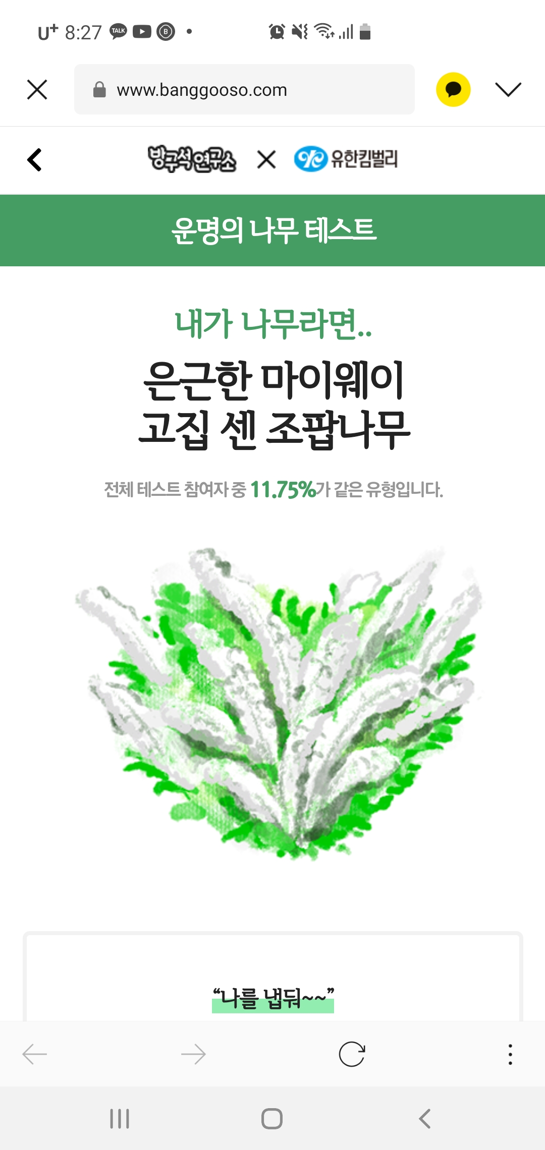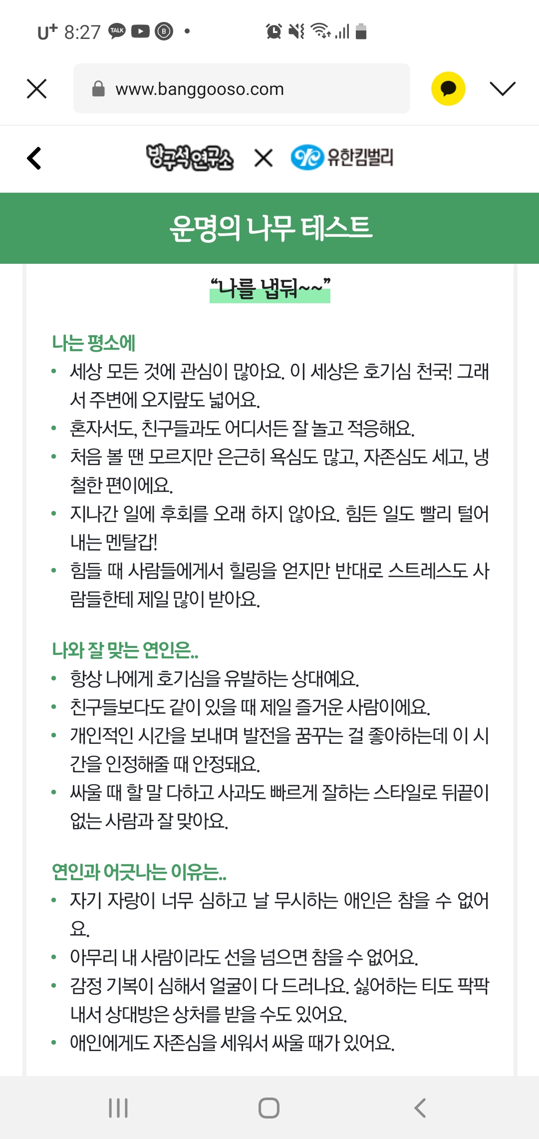 운명의 나무테스트는 12가지 질문의 답을 하면 결과가 나오는데요.