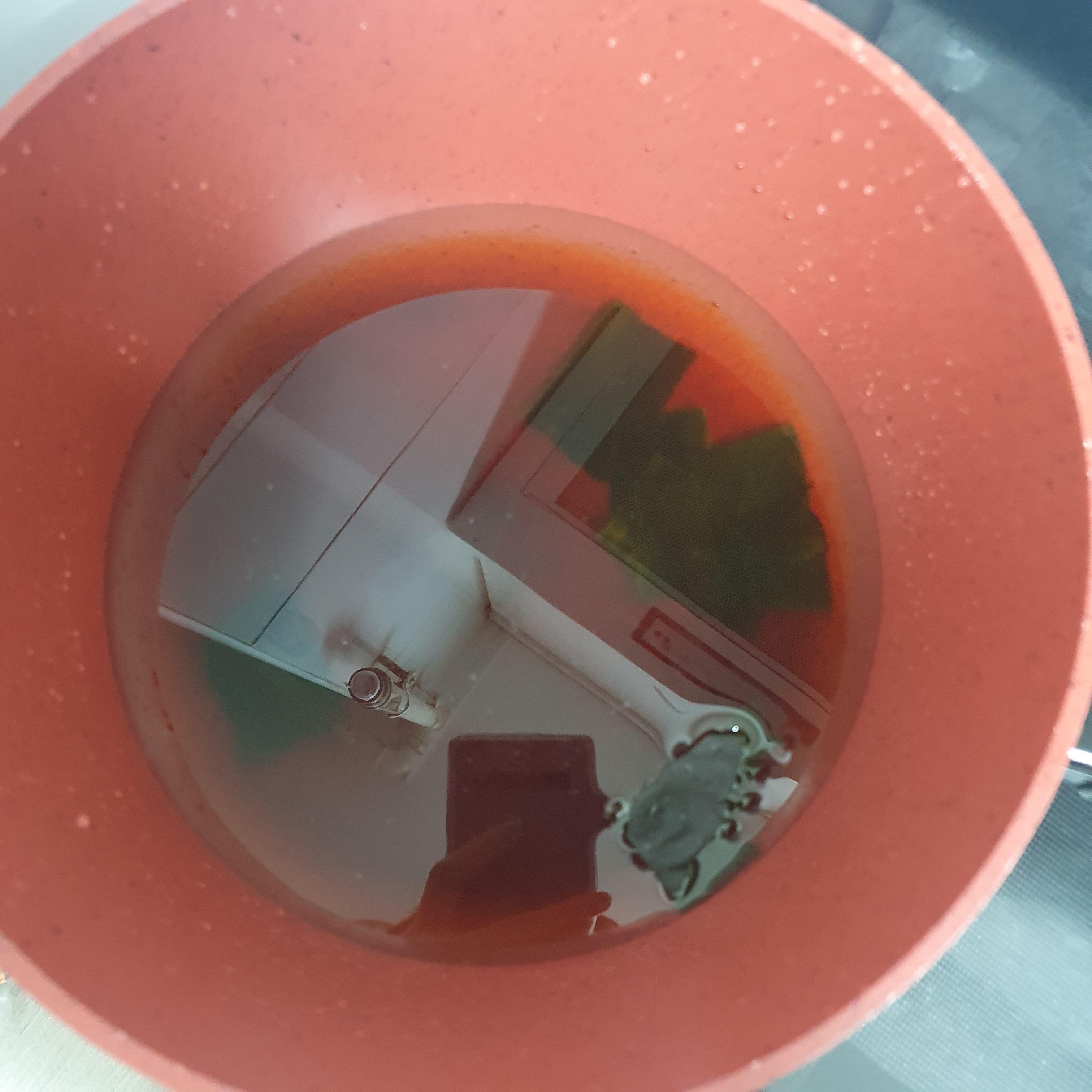 그런다음, 육수를 부어준 후 끓어주면 되는데요.