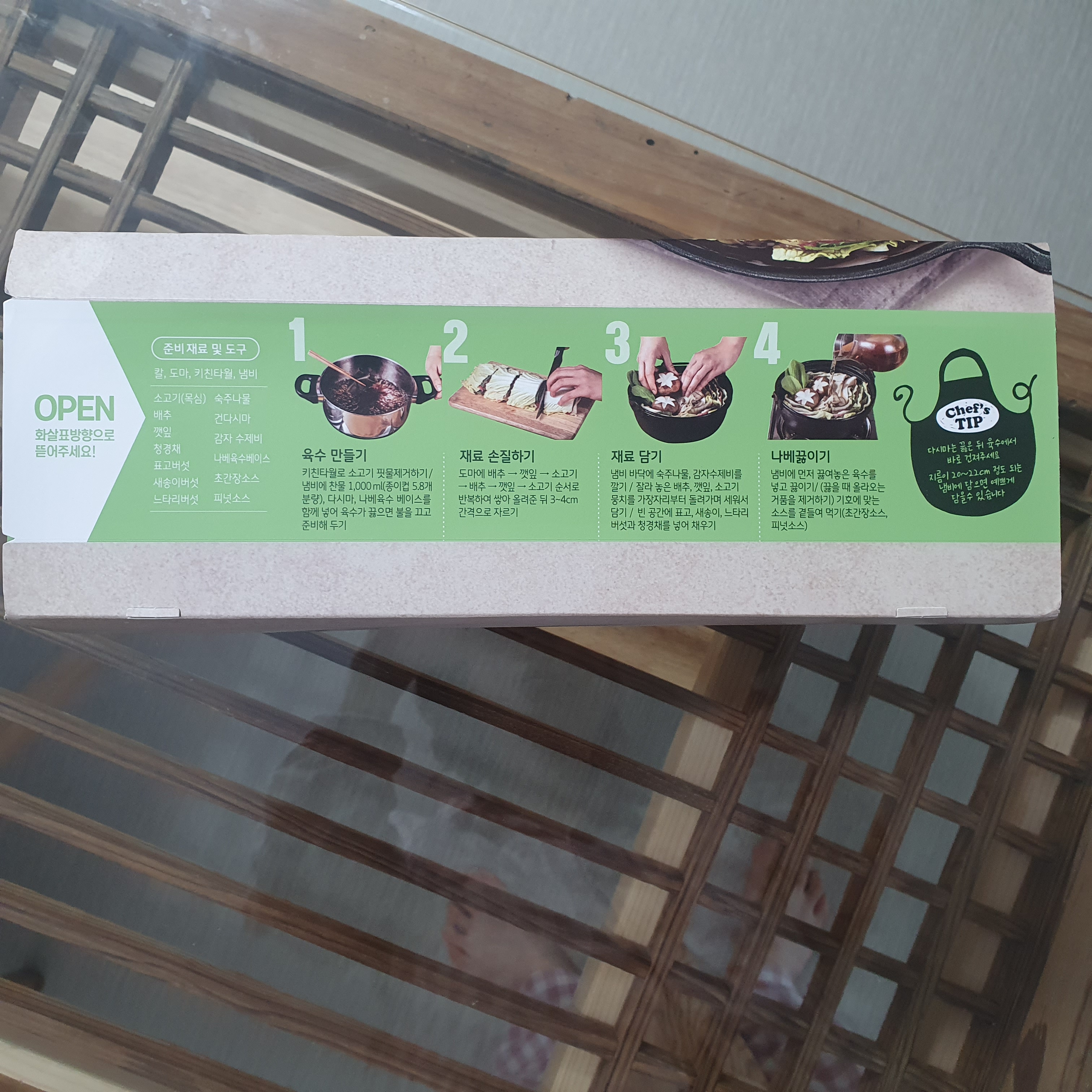밀키트 밀페유나베용기에는 요리방법이 적혀져 있는데요.