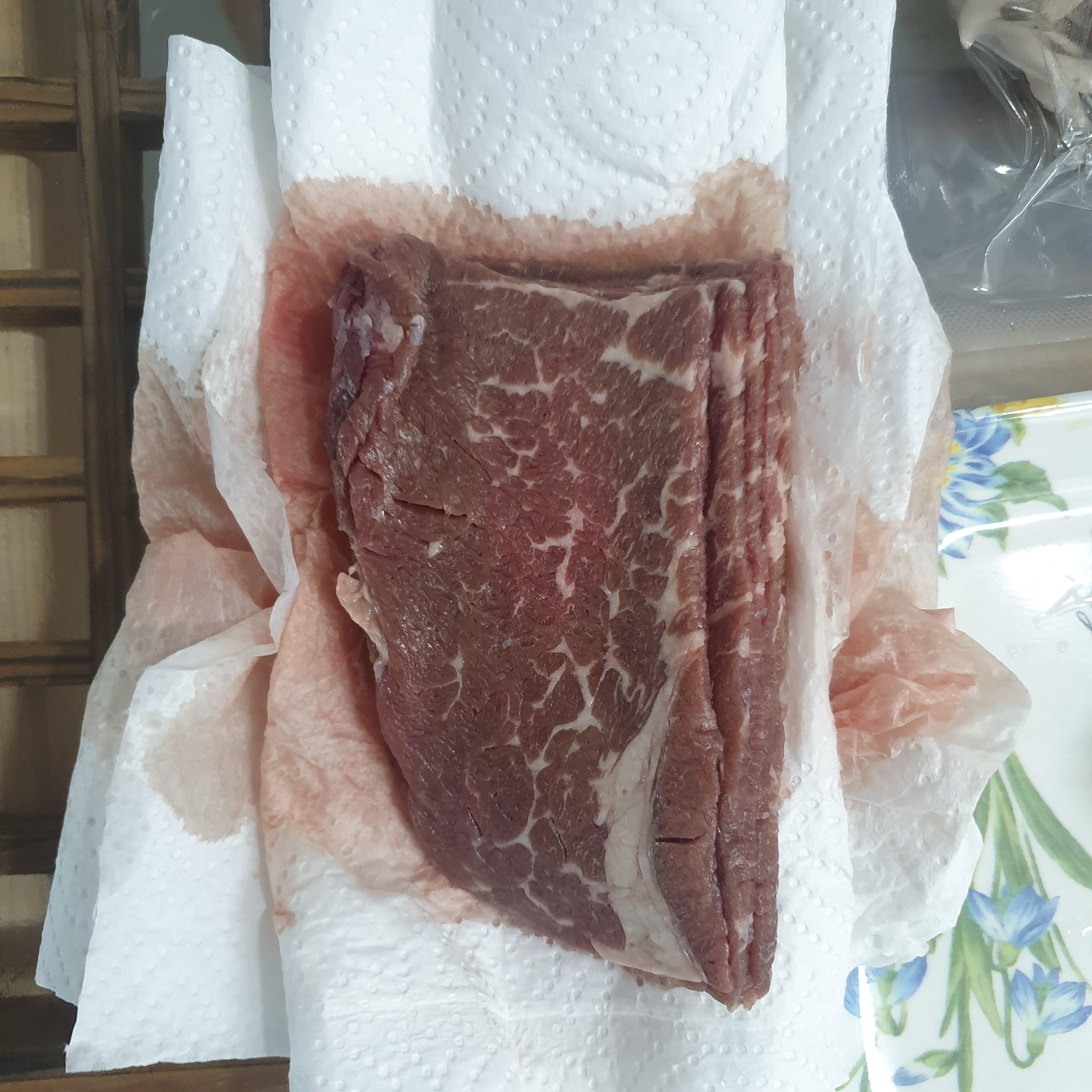 두번째로는 키친타월로 소고기 핏기를 제거해주는데요.